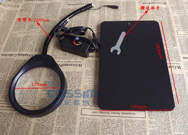 3、中間金屬軟管長250mm(有400mm可選擇),可以任意調(diào)節(jié)放大鏡的角度;