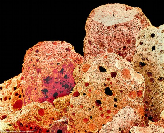 科學(xué)家為了研究人們?nèi)粘J澄锝M成拍攝了這組照片,照片展示了  草莓、巧克力、西蘭花和花椰菜等在顯微鏡下的形態(tài)。由于觀察的角度與平日不同,這些再常見不過(guò)的食物像是變成了“天外來(lái)客”,形態(tài)十分奇特。