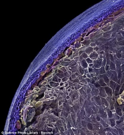 顯微鏡下的藍(lán)莓的內(nèi)部結(jié)構(gòu)。